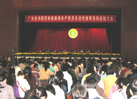 历时5个月的广东技术师范学院保持共产党员先进性教育活动,经过学习动员、分析评议、整改提高三个阶段集中学习教育,圆满完成了各项规定的学习教育任务。
