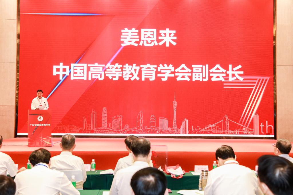 姜恩来在致辞中,对广东省高等教育学会近年来的工作成就给予了充分认可,特别指出其在服务高等教育改革与发展大局方面,通过深入的战略、政策、理论、实践研究及学术交流活动,有效汇聚高教智慧,推动高教研究深入发展,为广东高等教育改革与发展做出了显著贡献。他强调,中国高等教育学会将持续全力支持广东省高等教育学会的工作,深化双方在理论研究、学术交流、专业培训及展览展示等领域的合作,共同探索高等教育学术团体发展的新思路、新举措,携手为建设高质量教育体系、推进高等教育强国建设贡献力量。