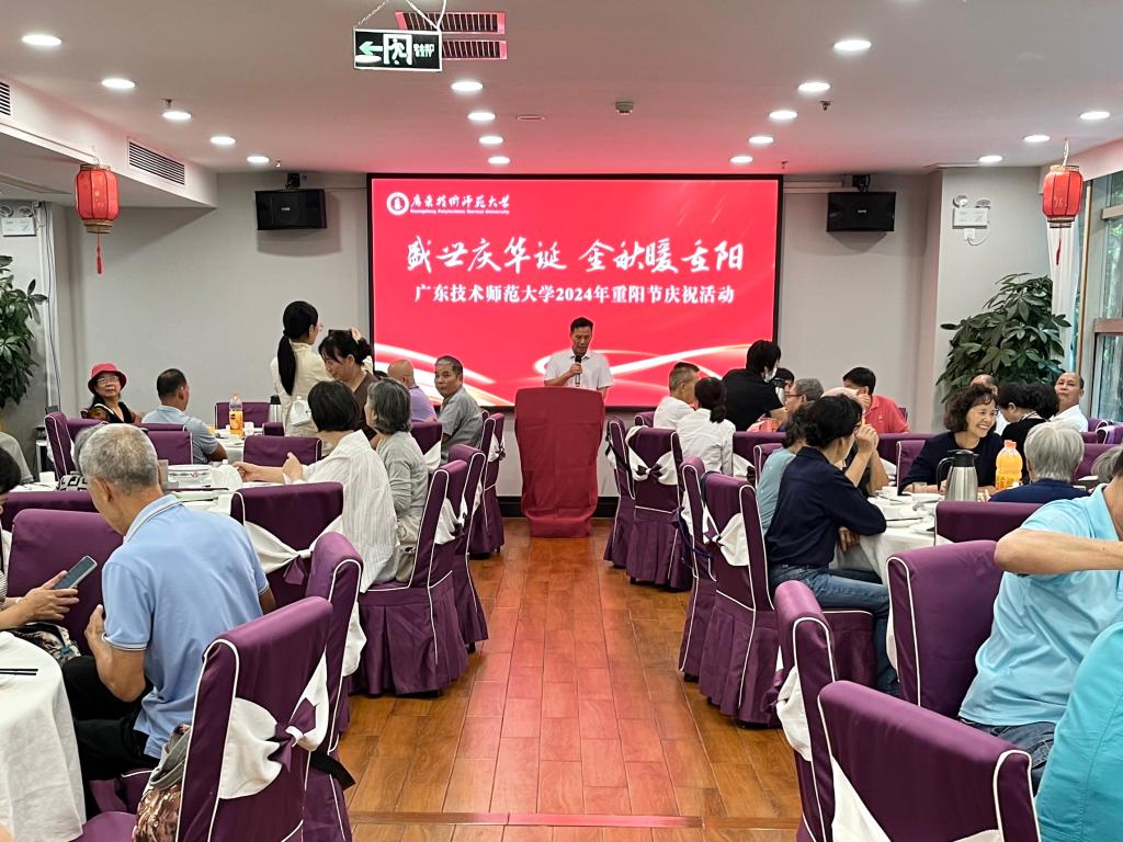 苏晖代表学校向32位寿星和全校1023位老同志致以节日的问候和诚挚的祝福,他衷心祝愿寿星、老同志们保重好身体,享岭南之灵秀,增期颐之洪寿。在致辞中,苏晖简要介绍了今年学校在教育教学、科学研究、人才培养、文体竞赛和离退休工作等方面取得的优异成绩,对老同志们为学校建设发展贡献的智慧力量、倾注的辛勤汗水表示衷心的感谢和崇高的敬意。他指出,今年是学校申博的关键一年,希望老同志们继续发挥优势作用,围绕博士学位授予单位建设工作贡献智慧和力量,推动学校事业发展再上新台阶!