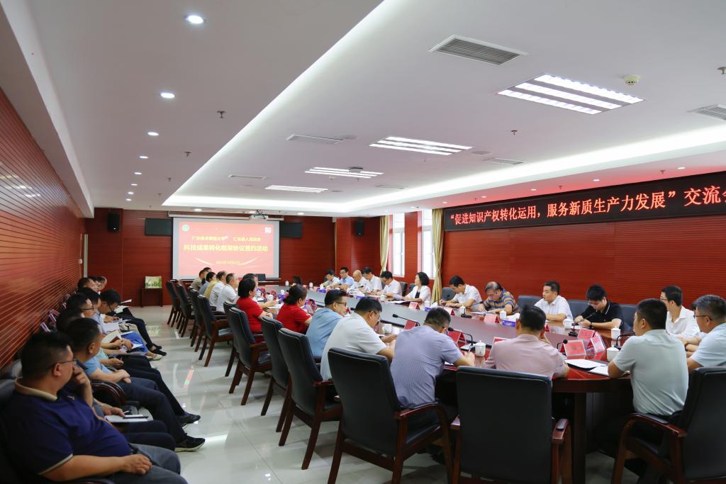 为深入学习贯彻党的二十大和二十届二中、三中全会精神,积极响应习近平总书记关于知识产权工作的指导思想,进一步推进知识产权强国战略的实施,落实省委“1310”具体部署及《广东省科技创新条例》要求,10月22日,白菜官网联合仁化县人民政府、仁化县“百千万工程”指挥部办公室在仁化县成功举办了“促进知识产权转化运用,服务新质生产力发展”交流会。此次会议旨在通过知识产权的转化应用,加速新质生产力的发展,提升地方经济的质量与效益。学校校长戴青云率领校长办公室、科研处、美术学院、音乐学院等相关部门人员,与广州知识产权交易中心的专业团队共同参与。仁化县委副书记谢建发、副县长叶剑斌,以及来自仁化县市场监督管理局、工信局的负责人、当地企业代表和各乡镇的相关人士均出席了此次交流会。会议由副县长叶剑斌主持。