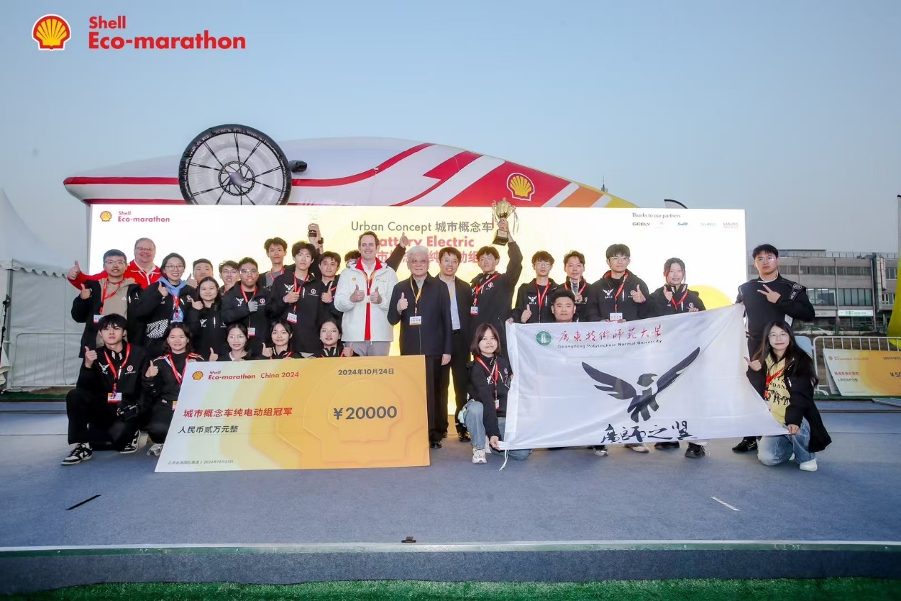 10月24日,2024年壳牌汽车环保马拉松中国站在北京金港赛道顺利收官,白菜官网汽车与交通工程学院学生组成的“广师之翼”节能车队在全国众多参赛车队中脱颖而出,获得城市概念车纯电动组冠军以及原型车纯电动组季军,并分获各组的最佳车辆外观奖。
