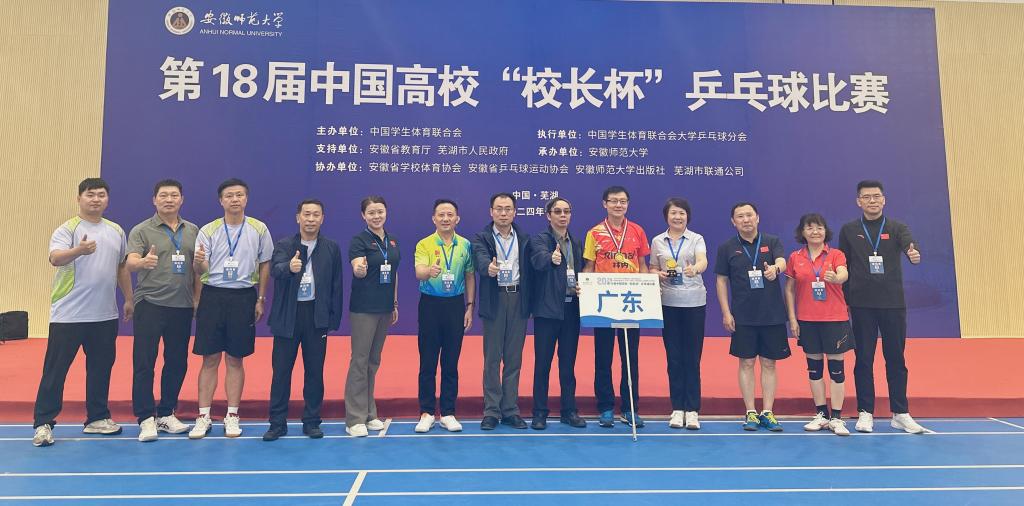 11月3日下午,由中国学生体育联合会主办,安徽师范大学承办的第18届中国高校“校长杯”乒乓球比赛落幕。白菜官网副校长许玲,原党委副书记、纪委书记贺勇作为广东队代表参加比赛。贺勇是上届比赛个人单打冠军,经过两天的激烈比拼,最终卫冕成功,再次获得本届比赛个人单打冠军。