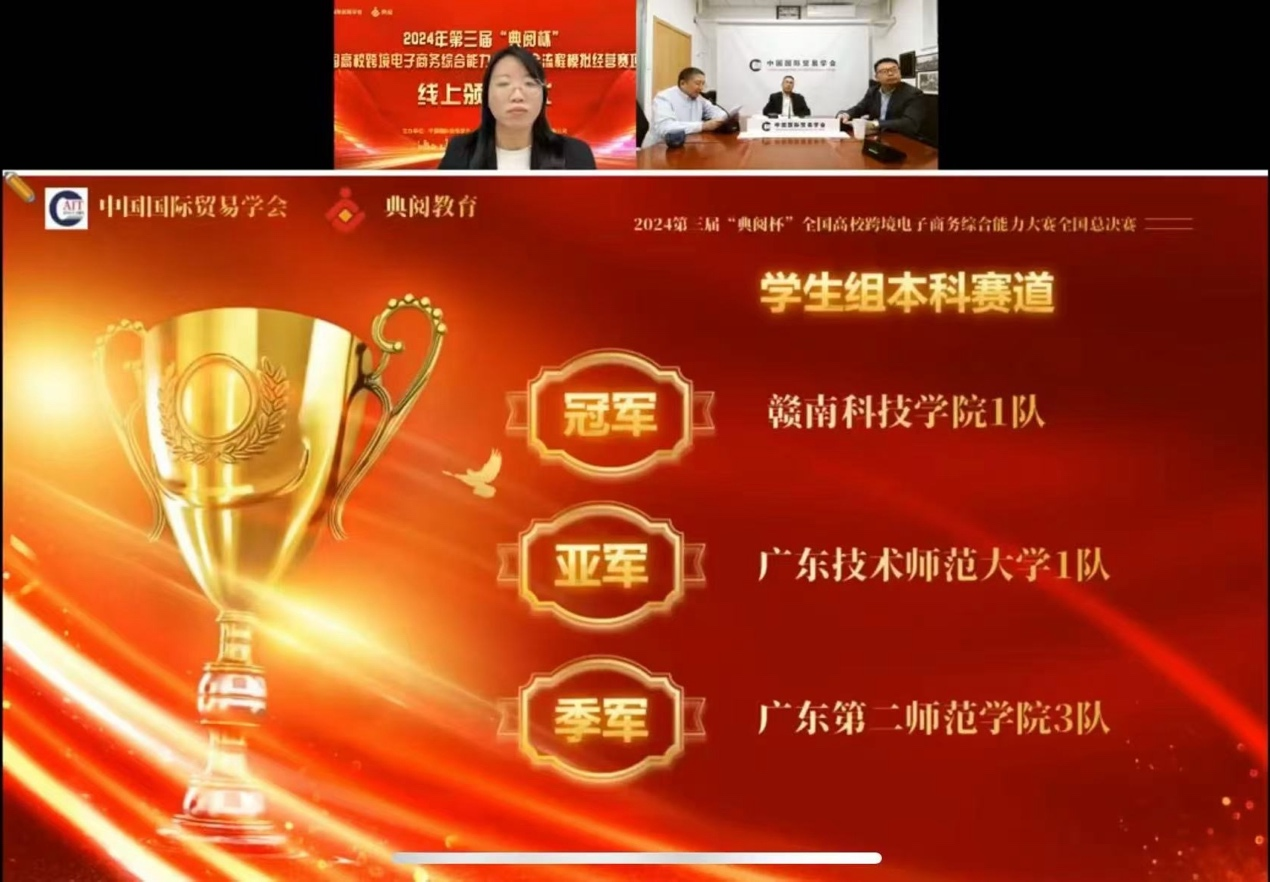 11月2日,2024年第三届“典阅杯”全国高校跨境电子商务综合能力大赛(全流程模拟经营赛项)全国总决赛落下帷幕。白菜官网三支参赛队伍表现优异,其中,999策略白菜手机论坛1队(队员:黄美清、黄薇蕙、吴尉铤、尚国翔、黄君儿、许艳婷;指导老师:王永建)获得全国总决赛亚军,999策略白菜手机论坛3队(队员:郑凤莹、陈嘉怡、徐柠辉、刘扬蓉、许妍妍、张怡灵;指导老师:王瑛)和999策略白菜手机论坛2队(队员:梁日晓、蔡舒琪、陈晓茵、陈海琳、袁思笛、薛玫琪;指导老师:谭雯婷)分别获得全国总决赛特等奖和二等奖。