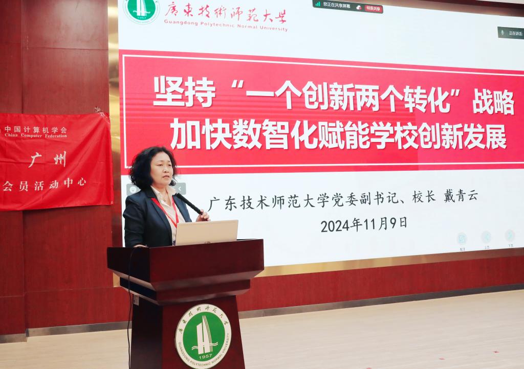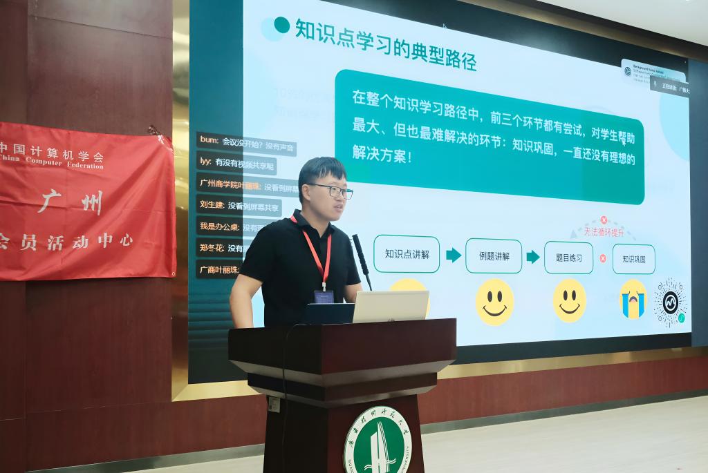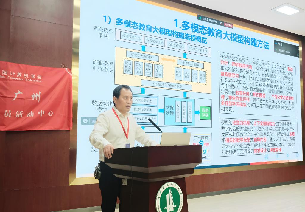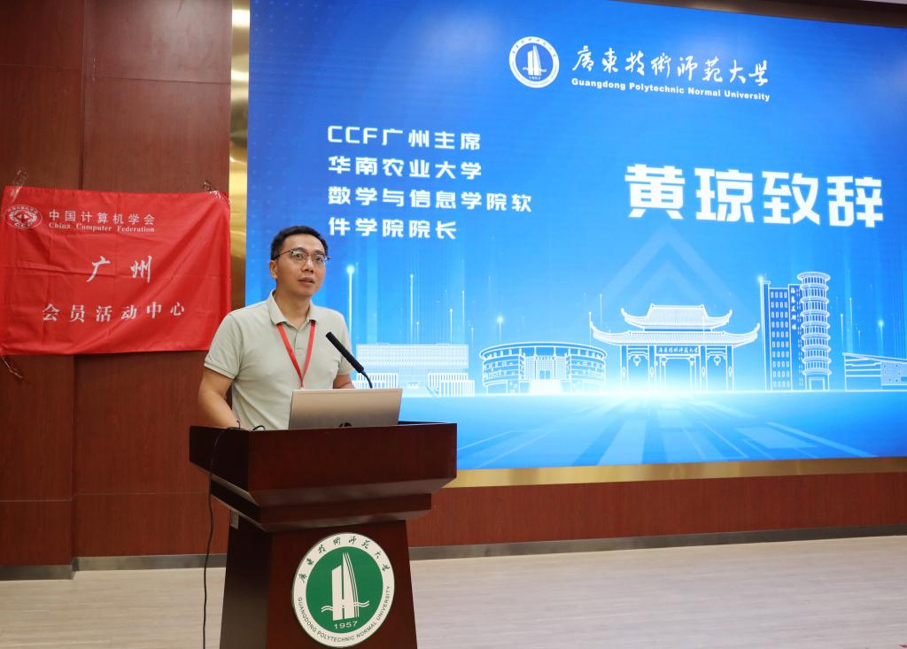 CCF广州主席、华南农业大学数学与信息学院、软件学院院长黄琼教授致辞,介绍了CCF广州分部的品牌活动“珠江论坛”,强调了人工智能赋能教育已成为当前的重要议题,并预祝论坛圆满成功。
