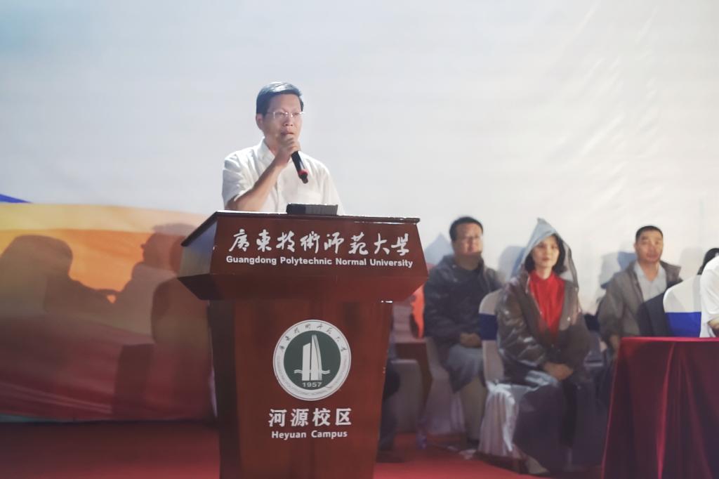 苏晖致开幕词。他指出,体育强则中国强,国运兴则体育兴。作为培养德智体美劳社会主义接班人的重要载体,大学承担着“健康中国”“教育强国”“体育强国”建设的重要使命。近年来,学校坚持以生为本,不断推进“五育并举”教育理念,在体育课程体系改革、校园体育文化建设、学生体质健康提升等方面,持续发挥体育在推进素质教育中的作用,营造积极向上的校园体育文化氛围。在过去一年里,学校男子足球队用智慧与团结,夺得全国青少年校园足球联赛大学男子校园组全国总决赛冠军,书写了学校体育发展新的历史。女子足球队不畏强手、勇于拼搏,荣获广东省大学生女子足球锦标赛一等奖;乒乓球队蝉联省大学生联赛冠军;田径队获得省赛团体总分第一名;武术长短兵、健美操、健身瑜伽、定向等项目披金戴银。“爱国荣校、强体健魂、艰苦奋斗、追求卓越”的体育精神在广师大校园里不断绽放新的光芒。