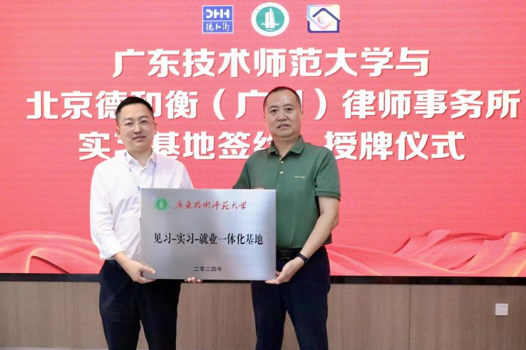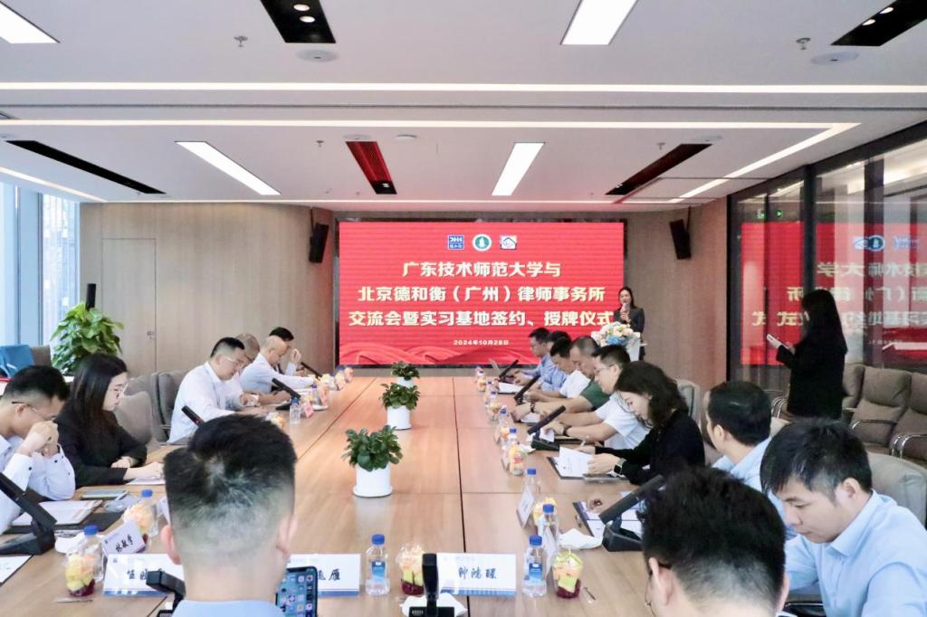 为加强应用型法治人才培养,加强校企双方的联系和合作,10月28日,法学与知识产权学院党委书记许建鑫、党委副书记李雪斌,校友会办公室主任罗继全一行6人赴北京德和衡(广州)律师事务所学习交流研讨,并举行实习实践基地合作协议签约揭牌仪式。北京德和衡(广州)律师事务所高级合伙人、管委会主任、党总支书记韩纬武,高级合伙人、管委会副主任胡芳军,联席合伙人、青工委主任、监事会副秘书长、2010届校友徐艳丽,联席合伙人、知识产权业务中心总监邹建红等出席会议。学校法律界校友联络处副主任、北京德和衡(广州)所公益法律事务中心副总监、2010届校友梁飞雁,联络处副主任、广东盈隆(黄埔)律师事务所主任、2011届校友麦荣福,联络处副主任、广东品杰律师事务所高级合伙人、2012届校友王清,联络处副主任、广东环宇京茂律师事务所律师、2017届校友钟鸿醒,北京德和衡(广州)所律师、2019届校友林敏学、2024届校友伍晓霖等参加此次活动。