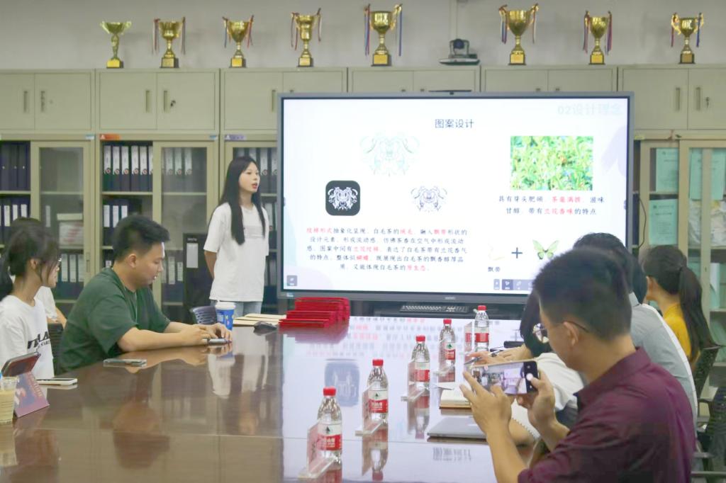 交流会上,获奖学生逐个展示了获奖作品的设计理念、设计思路及作品特色等。参会师生现场进行提问和交流。颁奖后,师生还围绕打造和培育仁化县农特产品特色品牌,如何深入挖掘提升仁化农特产品的知名度和影响力、助力仁化特色产业持续发展等进行深入讨论,并就如何进一步运用专业特色和设计专业知识赋能仁化县农特产品品牌建设进行交流。