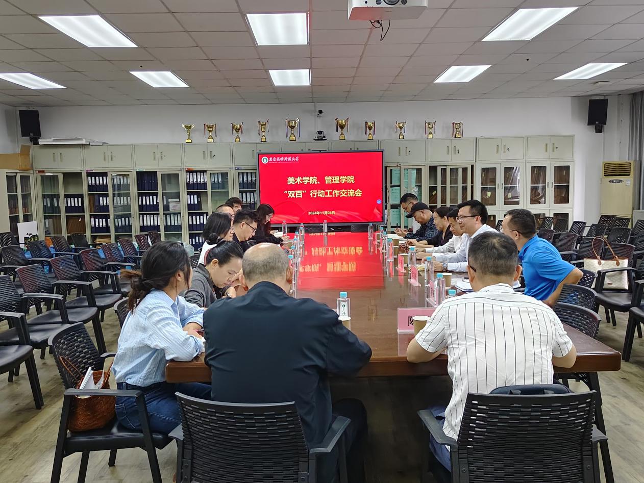 为进一步贯彻落实省委“1310”具体部署及“双百行动”工作要求,加强学院间的学科交叉融合,探索推进“双百行动”合作新路径,11月4日,美术学院和管理学院在东校区开展“双百行动”工作交流会。学校党委办公室、管理学院、美术学院相关领导、骨干教师参加座谈交流。