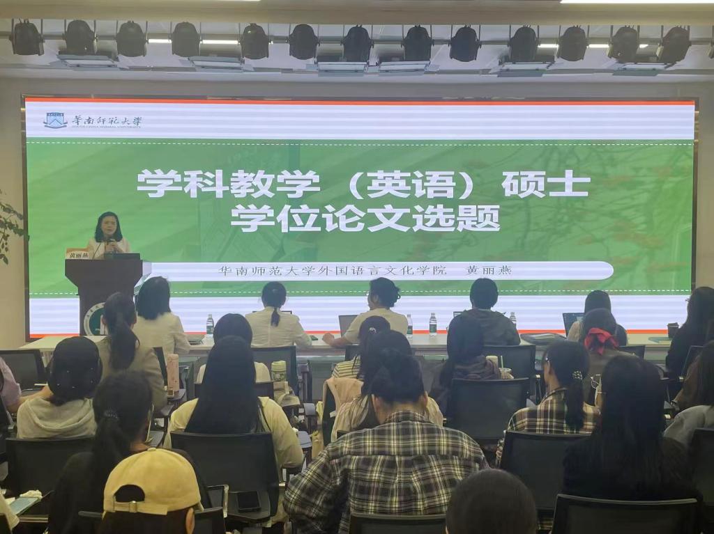 11月7日,外国语学院在达之学堂举办了“学科教学(英语)硕士学位论文选题”专题讲座,特邀华南师范大学教授、博士生导师,广东省普通高校人文社科重点研究基地“语言认知与测试研究中心”主任黄丽燕为主讲嘉宾。外国语学院院长徐玲、副院长陈倩、研究生导师代表及80多名研究生参加此次讲座。