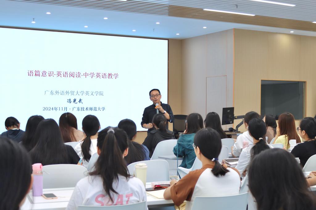 为深入实施外国语学院人才培养方案,进一步提升英语(师范)专业学生的教育情怀与专业素养,11月7日,我院特邀广东外语外贸大学英文学院教授冯光武在白云校区一教430作题为《语篇意识、语篇阅读和中学英语教学》的专题讲座。
