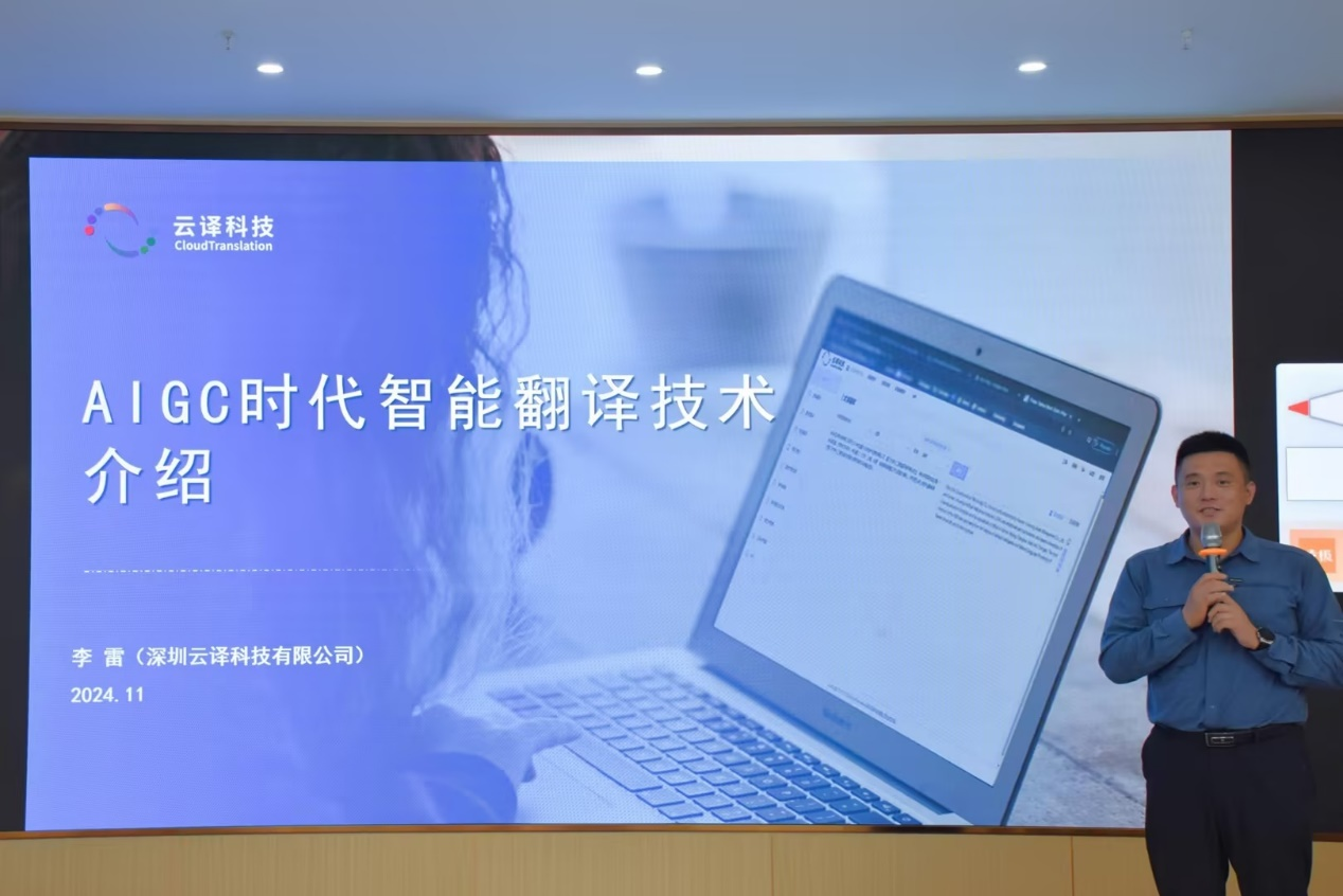 在讲座中,李雷深入探讨了全球机器翻译行业的全景和人工智能技术在语言服务行业的现状,给同学们提供一些宝贵的行业见解和经验。另外,李雷通过对比人机双语翻译实例,展现了翻译技术在各领域的应用,并详细介绍了AIGC时代智能翻译技术的创新应用,让同学们更清晰地认识到翻译技术在各个领域的重要性。主持人则通过互动环节,引导同学们积极发言,与专家探讨翻译技术在语言教学中的创新应用,激发大家对翻译技术的兴趣和热情。