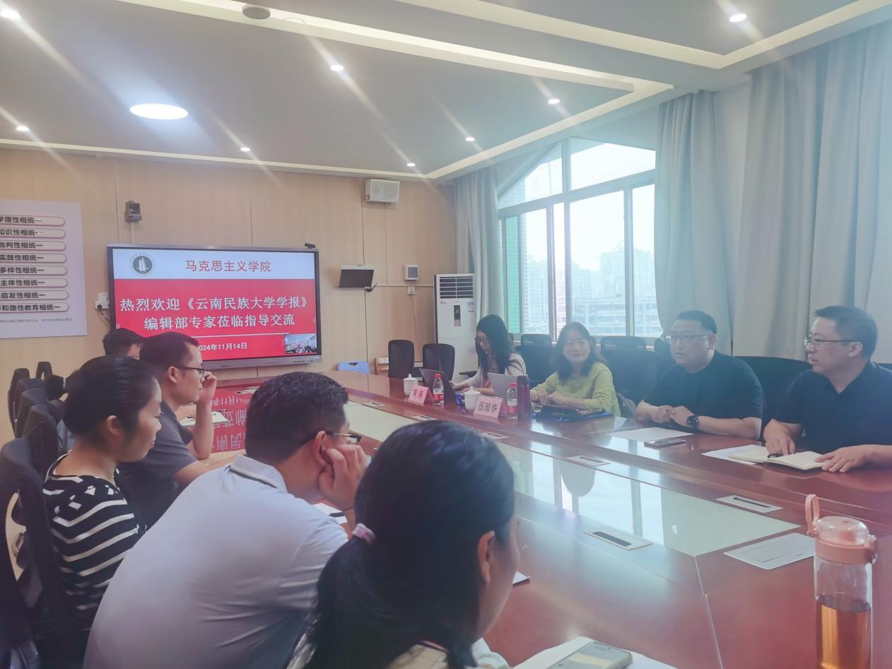 11月14日下午,《云南民族大学学报》(哲社版)编辑部伍琼华研究员和陈燕教授应邀来马克思主义学院座谈交流。马克思主义学院院长、各教研室主任、学科建设秘书、教学秘书以及近五年入职的新进教师参加此次座谈会。