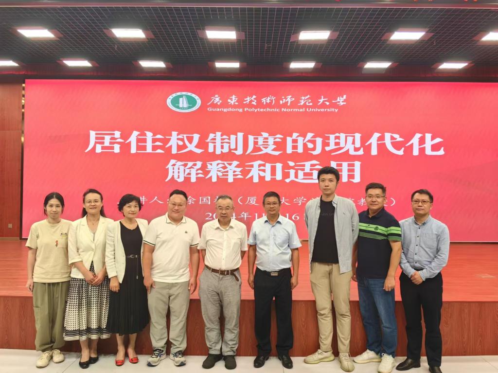 为进一步提升法学与知识产权学院师生的理论研究水平,活跃校园学术氛围,11月16日,厦门大学南强重点岗位教授、博士生导师徐国栋教授应邀来到白菜官网,在白云校区图书馆报告厅为师生作了题为《居住权制度的现代化解释和适用》的专题学术讲座,法学与知识产权学院师生代表共330人聆听了讲座。讲座由法学与知识产权学院院长黄俊辉主持。