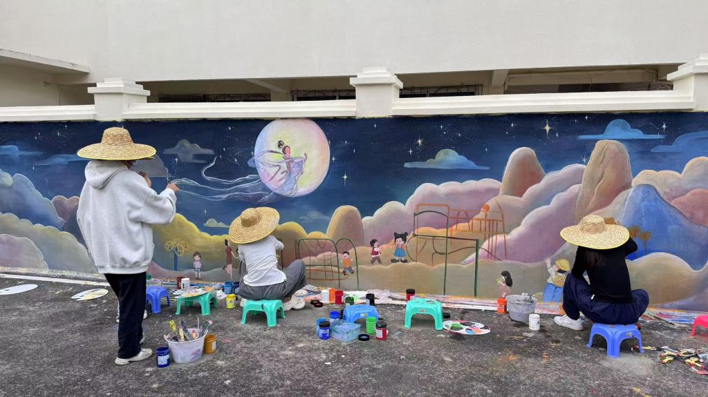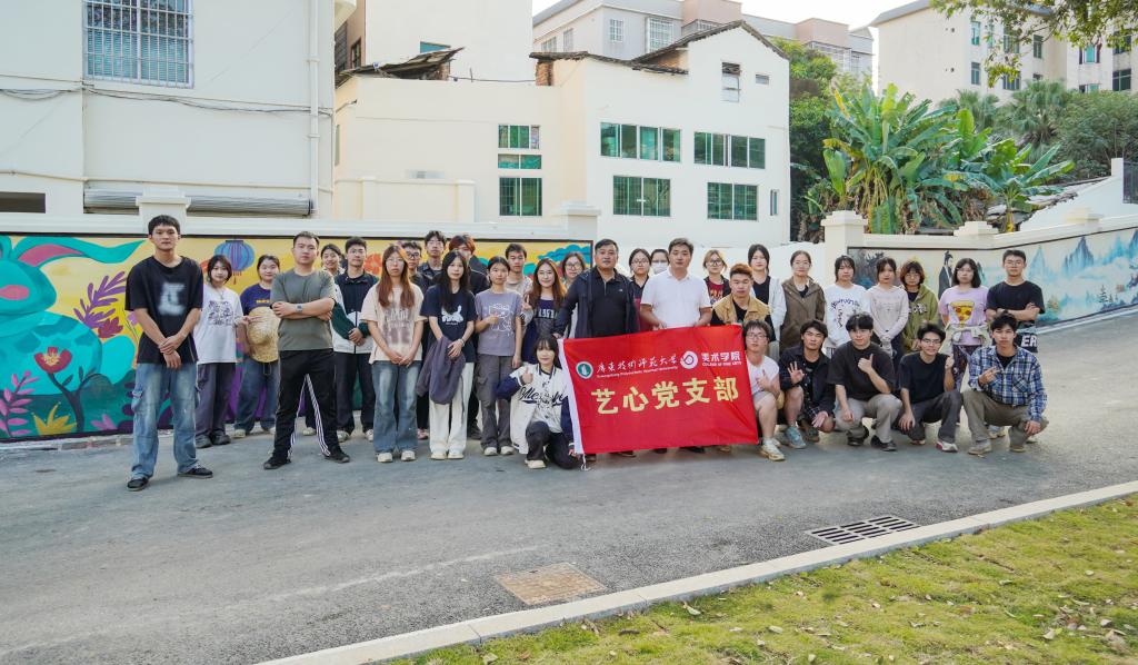 为全面学习贯彻落实习近平总书记视察广东重要讲话、重要指示精神,全力聚焦省委“1310”具体部署,学校坚持“县域所需、高校所能”原则,全力推动百校联百县助力“百县千镇万村高质量发展工程”(以下简称“双百行动”)校地共建项目落地落实落细,11月8日至11日,由学校党委组织部牵头,学校团委联动美术学院组织全国党建工作样板支部培育创建单位“美术学院艺心党支部”和校级样板党支部“服装环艺系学生党支部”党员、教育部卓越教师培养计划改革项目创新班学生等师生代表近40余前往仁化县周田镇开展美育美化墙绘活动。期间,周田镇党委书记冯奋德,党委副书记、镇长郭胜洪,党委委员谢世安亲临现场指导活动开展。