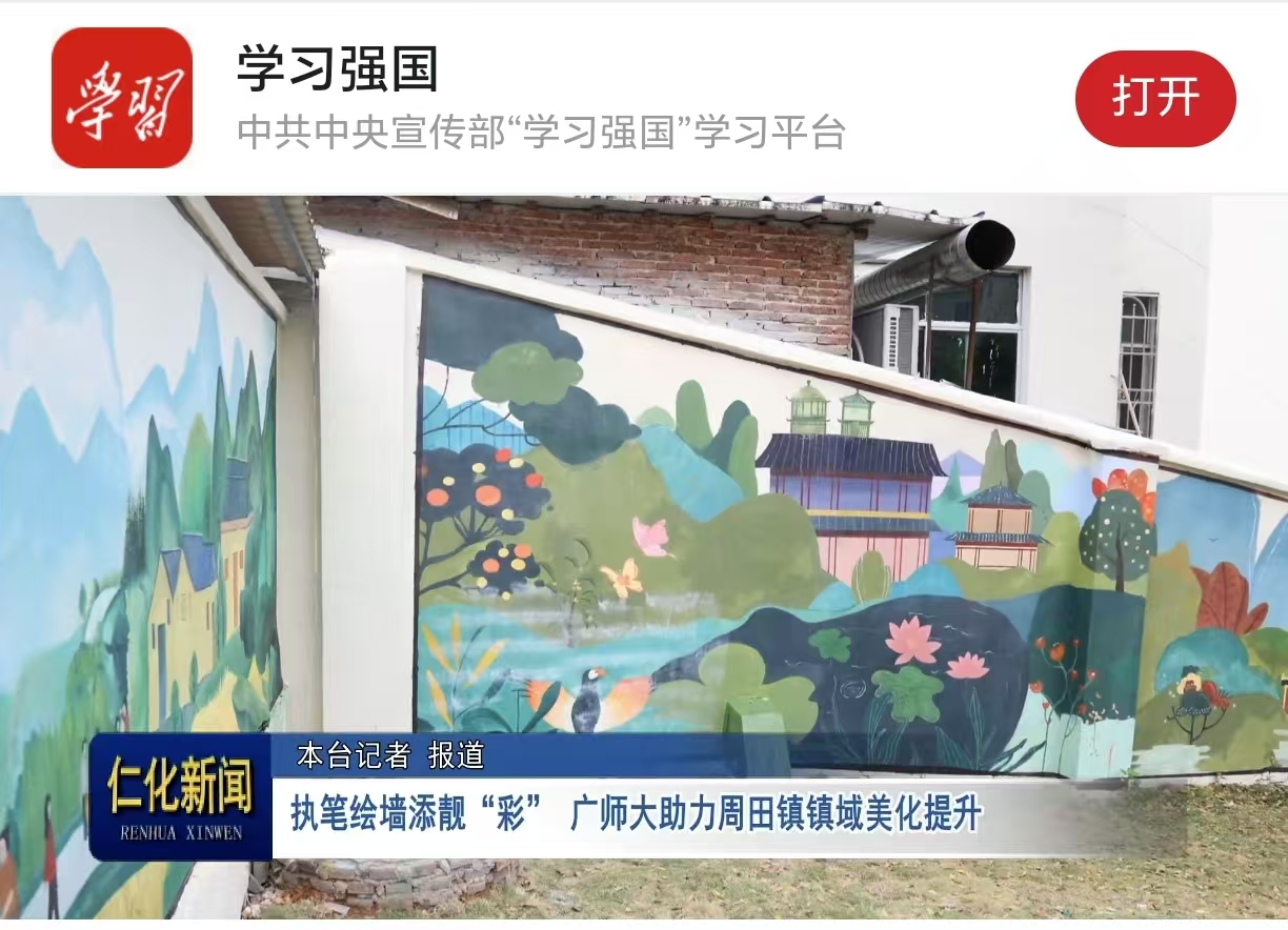 活动期间,中共仁化县委宣传部“仁化发布”对周田镇、周田镇驻镇帮扶工作队积极对接999策略白菜手机论坛助推“百千万工程”典型培育工作进行了专题宣传;仁化广播电视台以《执笔绘墙添靓“彩,广师大助力周田镇镇域美化提升》为题对团队通过多彩墙绘与乡风文明宣传有机融合,实现镇域“颜值”和“气质”双提升进行了专题报道,该宣传报道还被“学习强国”县级融媒号发布平台转发报道。