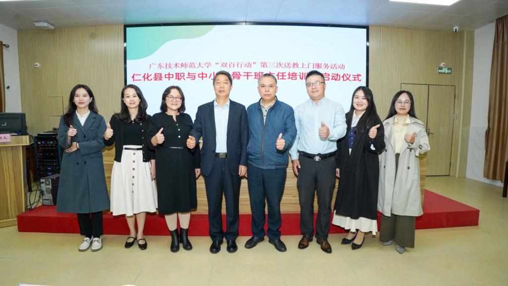 为了响应中共广东省委提出的百校联百县助力“百千万工程“行动(简称“双百行动” )的部署要求,根据学校驻韶关市仁化县教育高质量发展的现实需求,广东省中等职业学校德育研究与指导中心组织专家团队一行6人,于11月20日开展仁化中职与中小学骨干班主任培训,这是学校委托省中职德育中心开展“双百行动”第三次送教上门服务活动。