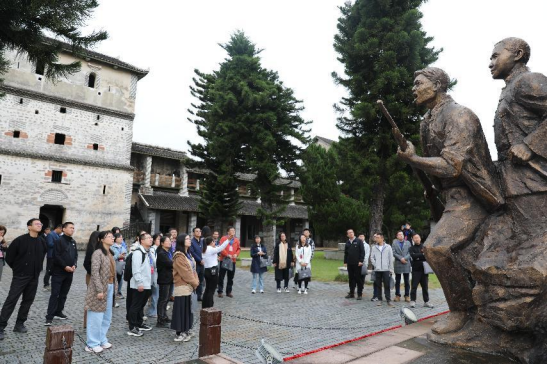 下午,全体学员抵达全国重点文物保护单位、爱国主义教育基地、广东省中共党史教育基地双峰寨。全体学员按照展览的五个单元的内容逐一进行学习,在看到歌曲《唯有农民真可怜》和《农民运动歌》等革命歌曲时,音乐学院学员汪胜付教授有感而发,激情领唱,全体学员深受感染齐声合唱,在铿锵有力的歌曲中,大家感受到了农民运动的英勇无畏精神,进一步增强了爱国主义情感。